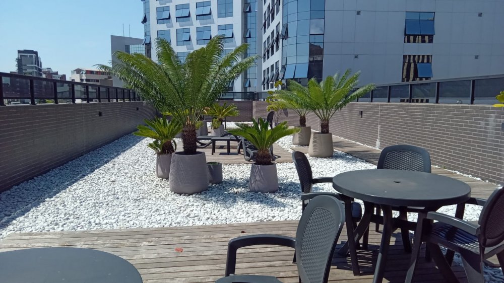A área comum possui salão de festas com churrasqueira, lavandeira coletiva, bicicletário, além de um rooftop, área aberta com espreguiçadeiras e muito verde para você relaxar.