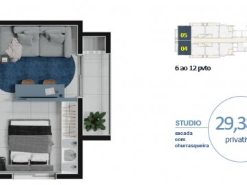 *****ESTE STUDIO TEM 27.78M2 + 20,91 GARDEN**** PLANTA EXCELENTE ÚNICO DISPONIVEL NESTE PERFIL ****
